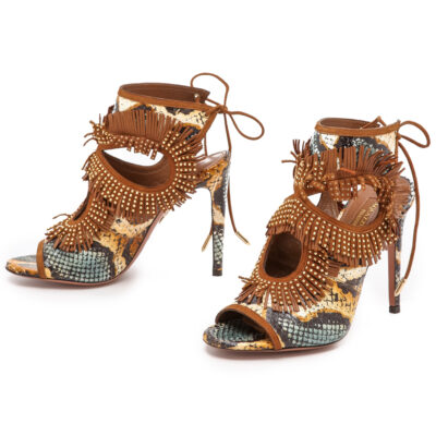 Aquazzura Sexy Fringe Snakeskin Sandale