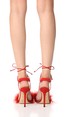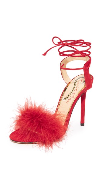Kožne tanke sandale sa umetnutim krznom na remenu oko prsti. Dodane trake za omatanje oko gležnja daju glamurozni štih. Pokrivena peta stopala. Kožne. Izrađene u Italiji. Dimenzija pete: 4,25 in / 110 mm.